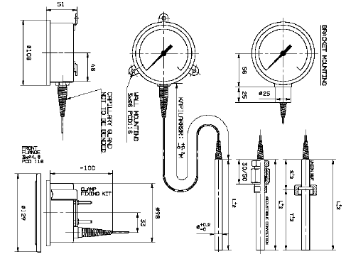 TEMPRESS remote reading thermometer, types A73 and A74 are designed for all industrial and marine applications where a capillary tube between the sensor and the instrument is required.